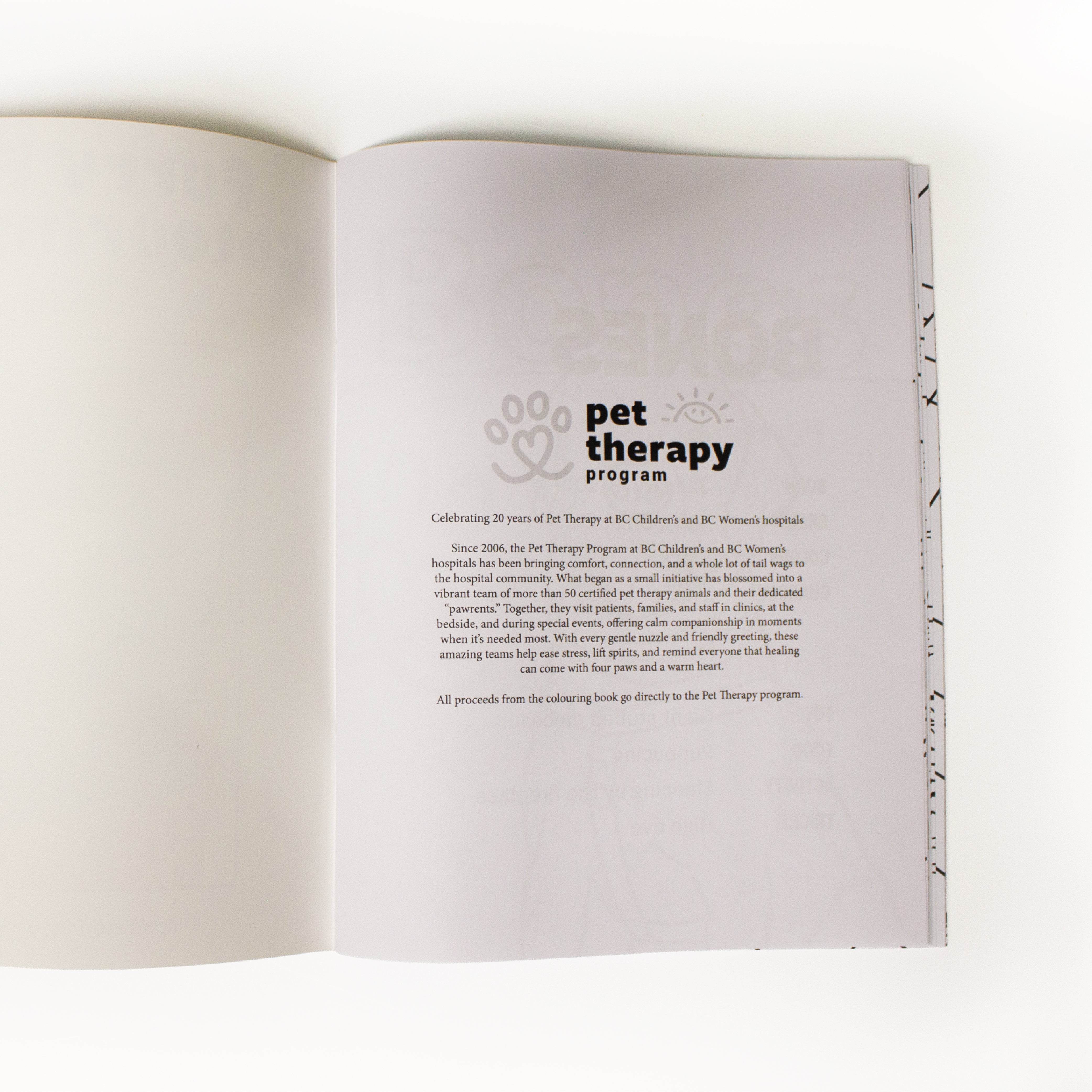 Proceeds from every purchase support BC Children’s Hospital (BCCH) Pet Therapy program — making it a meaningful way to give back while you enjoy colouring.